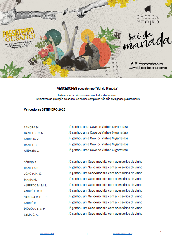 Para entrares nesta aventura basta comprares duas garrafas de Cabeça de Toiro (750 ML), guardar o talão de compra e submeter a tua participação no formulário oficial. Podes concorrer de 1 de setembro a 31 de outubro de 2025, sempre que cumpras os requisitos indicados no regulamento.